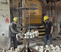 将型壳送入高温炉(约1000-1100°C)进行焙烧,去除残留的微量蜡、水分和有机物,同时提高型壳强度。焙烧后的型壳需保持适当温度,准备浇注。